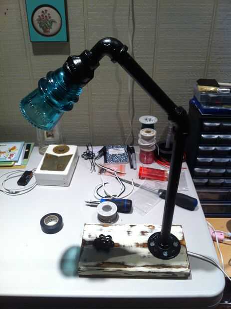 Utilicé mi epoxi industrial de la fuerza para garantizar una tuerca de la varilla de la lámpara al final de mi carrera 90 hilos de codo (donde el reductor de acoplamiento se encuentra con el codo) para colocar el aislante de vidrio más fácil. Deje que la curación de pegamento para una buena 8 horas asegurar que ha puesto completamente. Llevará a cabo una gran cantidad de peso. Seguramente hay muchas otras maneras para asegurar el aislante de la tubería, pero esto es sólo el método que usé.