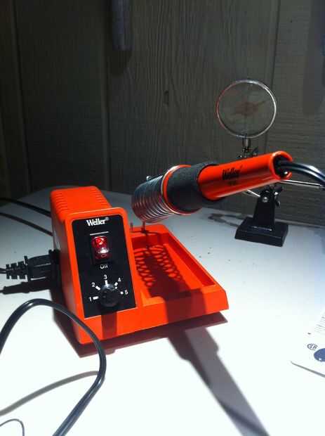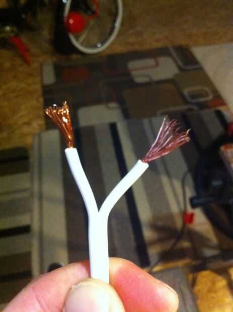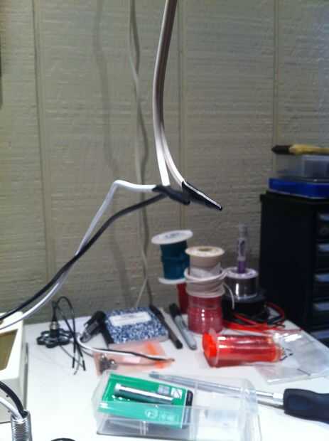 La soldadura de los cables de la dos toma de los cables de la lámpara.