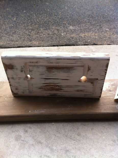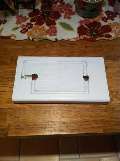 Después de que la mancha seque, decidí que necesitaba algo diferente. Simplemente parecía faltaba algo. Me decidí a pintar todo el tablero con pintura blanca acabada y entonces antiguos más. Simplemente pinté unos abrigos de blanco sobre la mancha (realmente sólo necesita una capa, pero quería hacerlo parecen han sido repintada varias veces para la mirada antigua). Permita que la pintura se seque.
