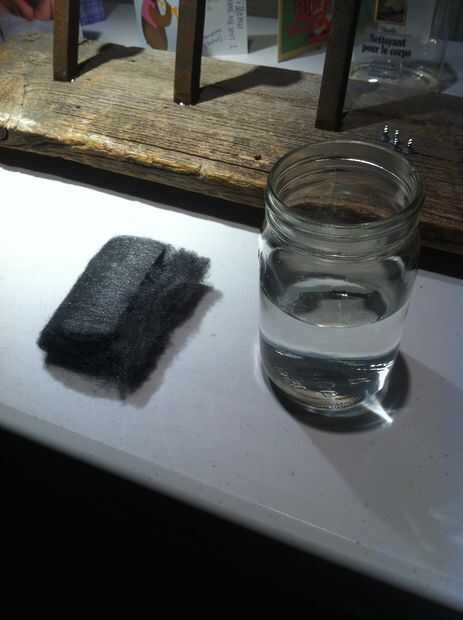 A continuación, llenar un frasco con vinagre blanco y sumergir un pedazo de lana de acero en el vinagre. Let es sentarse hasta que la lana de acero se disuelva completamente. Tardó una semana en mi caso.
