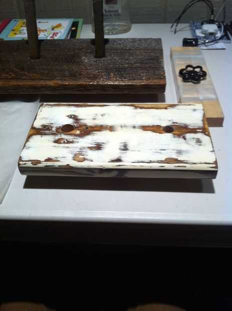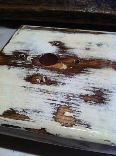 A continuación, usé una lijadora eléctrica con una lija de 180 y lijar el tablero de forma aleatoria hasta que algunas áreas de la pintura fueron usados a través de la madera, otros tenían pintura sólida blanco todavía y todo lo demás. Realmente resultó forma mejor de lo que esperaba y estaba muy contento con él.