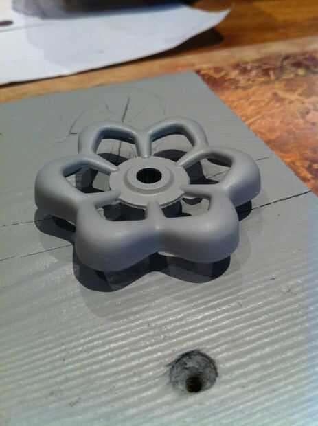 Encontré un pequeño interruptor rotatorio que estaba feliz con y simplemente pegar el extremo dentro de la parte inferior de la manija de grifo de agua con algunos epoxy muy fuerte. Asegúrese que el interruptor de alimentación hasta la parte inferior de la placa antes de pegar a la manija de grifo.