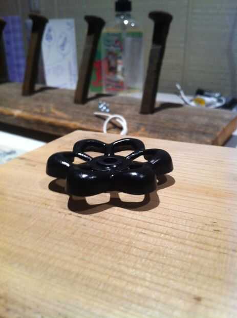 Si usted quiere pintar su manija, hacerlo antes de que pegue a su conmutador. Mina fue simplemente de acero galvanizado y quería negro para que coincida con la lámpara. Si está pintando tuyo, dar el mango entero un ligero lijado con alguna lija seca 400, enjuáguelo con agua y secar bien. Luego, rociar una capa de imprimación, deje que se seque y rocíe la capa final de pintura después.