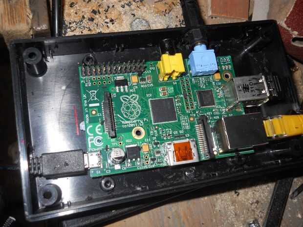 Una vez que se ha establecido la frambuesa pi, usted necesitará preparar un recinto. He pasado por una carcasa ABS negro que compré de rápido. (Enlace: http://www.rapidonline.com/design-technology/abs-c...). Para perforar los agujeros, comencé con un poco más pequeño entonces intercambiado hacia fuera un poco mayor de tamaño. Repetí esto para la toma de audio, ethernet, el poder y la óptima HDMI. Como se puede ver, el producto final parece muy satisfactorio.