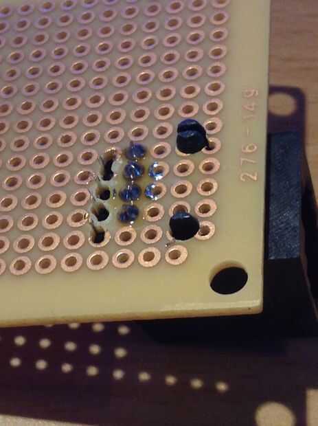Una fila de pines se ajusta muy bien, pero el otro se compensa, y necesita perforar los agujeros en el tablero hasta que tope. También, la plástica de montaje zapatas tendrán un agujero más grande. El resultado final no es bonito, pero si tiene 4 pines en OK, la toma será bastante sólida.