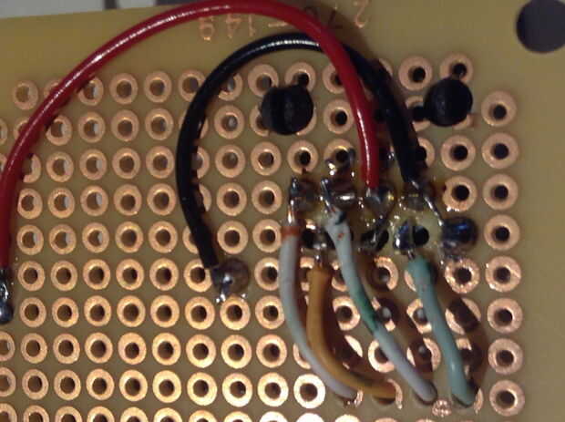 Cuando haya terminado, la toma sería algo así como la fotografía (excepto, que un poco más ordenado). Para sostener el cable en su lugar, perforar un par de pequeñas ranuras en la placa del pad, luego a través de un lazo de cable pequeño.