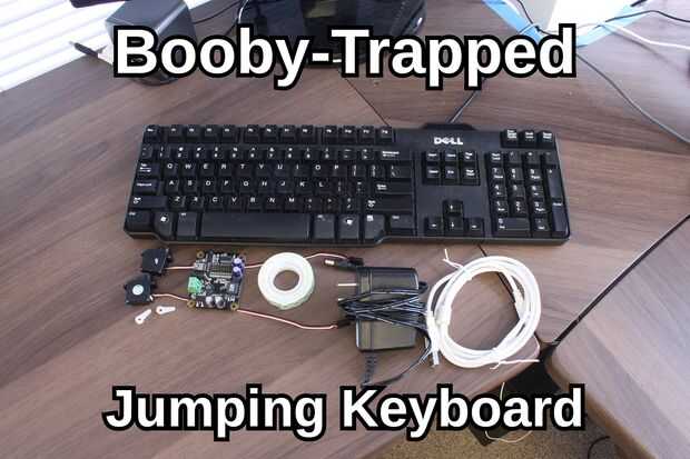 conectar el elemento musical de una tarjeta de felicitación de cantar a la cerradura de casquillos LED en el teclado de las víctimas. Ahora cada vez que pulse el bloqueo de mayúsculas tecla de los juegos de música (y muy fuerte también).Esto es una g