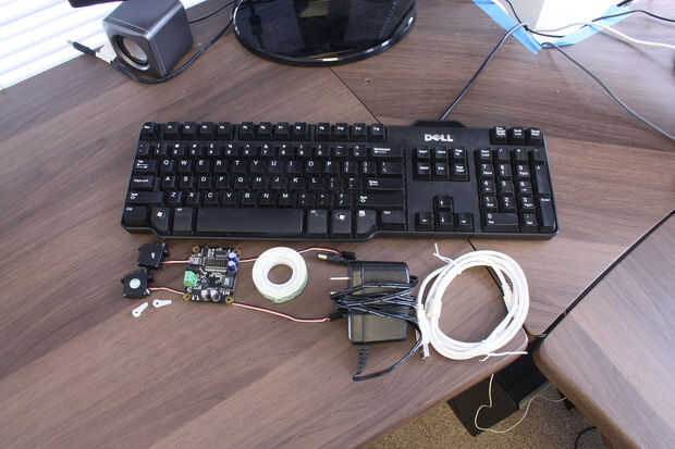 conectar el elemento musical de una tarjeta de felicitación de cantar a la cerradura de casquillos LED en el teclado de las víctimas. Ahora cada vez que pulse el bloqueo de mayúsculas tecla de los juegos de música (y muy fuerte también).Esto es una g