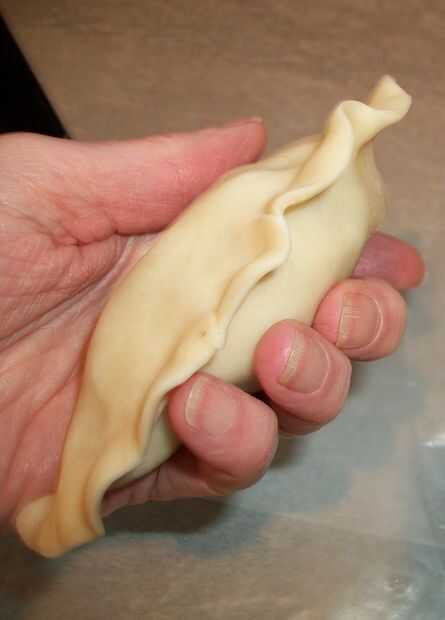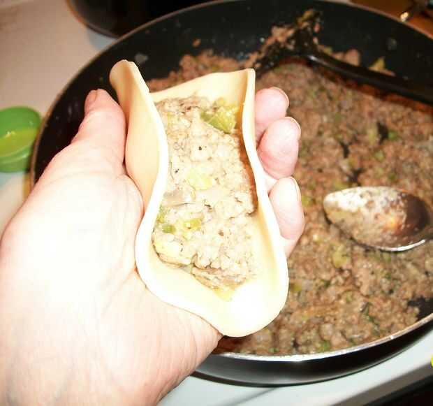 Tomar tus rondas de corteza de pastel en la mano y la cuchara lo suficiente como para llenar a la mitad no a cerca del borde. Pliegan y pellizcar con los dedos.