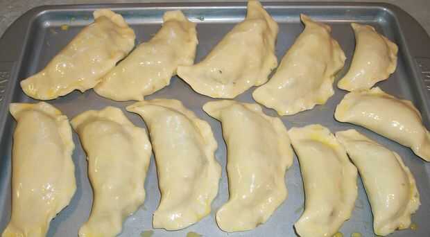 Repita hasta que todos los de masa se utiliza. Pincel con yema de huevo batido, esto le da un hermoso brillo dorado cuando al horno. Hornear durante unos 30 minutos o hasta que estén doradas.