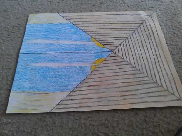 Tomar la tiza Reinita y color en el cielo de su entorno. Hacerlo en ambos lados.