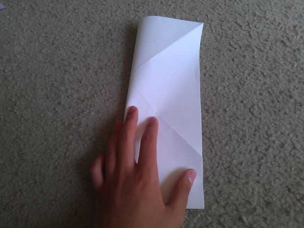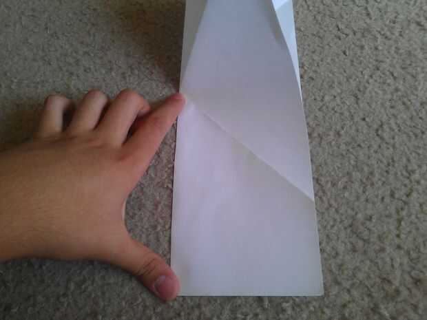 Doble el papel por la mitad de la parte inferior hasta el centro de la tapa de "X" como se muestra.