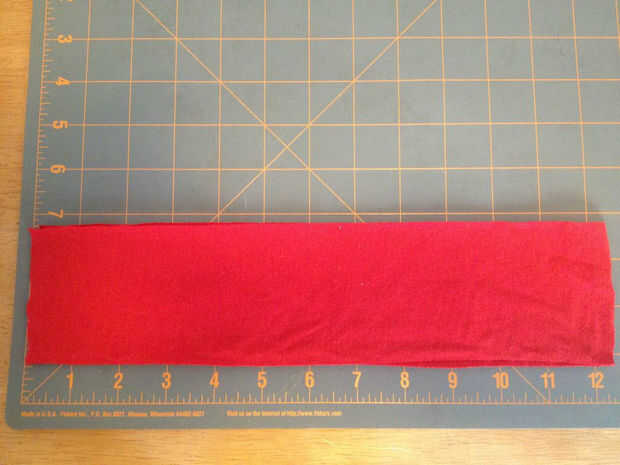 Paso 1. Doblar la tela en la mitad longitudinalmente, derecho contra derecho, dando por resultado un 3" alta, 12" largo rectángulo.