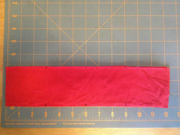 Paso 2. A lo largo de la anchura de la tela, hacer un pequeño guión cada 3" a lo largo de la parte superior e inferior de la tela.