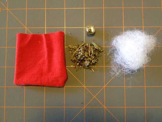 Paso 5. Rellenar con un poco de relleno (o pequeños trozos de tela), hierba gatera y jingle bell, si se desea. Pero no llene en exceso - hará que coser la costura superior más difícil.
