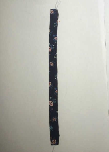 Cortar a una tela de 4cmx20cm para la correa. Doblar y coser los lados. Girar adentro hacia afuera y tire de ella a través del orificio pequeño que dejaste anteriormente y coser.