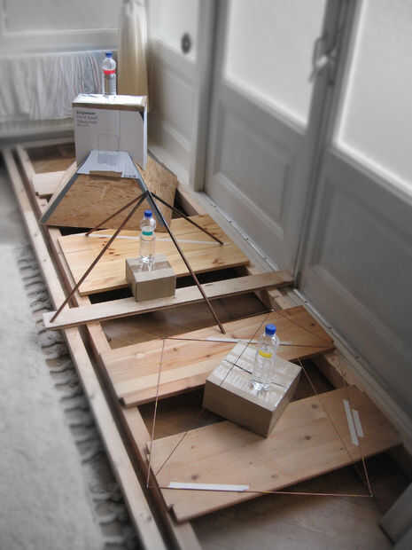 Las vigas de madera y los tableros que ves en la imagen se utilizan para hacer el piso nivel exactamente. Porque vivimos en una casa antigua, nuestra planta está lejos de nivel...