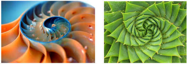 La proporción áurea es una proporción muy importante que se puede encontrar por todas partes en la naturaleza. Las imágenes de arriba muestran dos ejemplos de beatufil de la proporción áurea en la naturaleza.