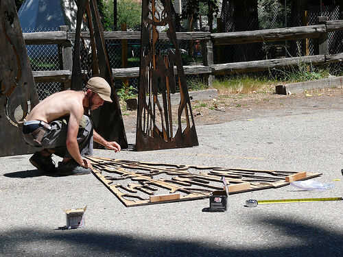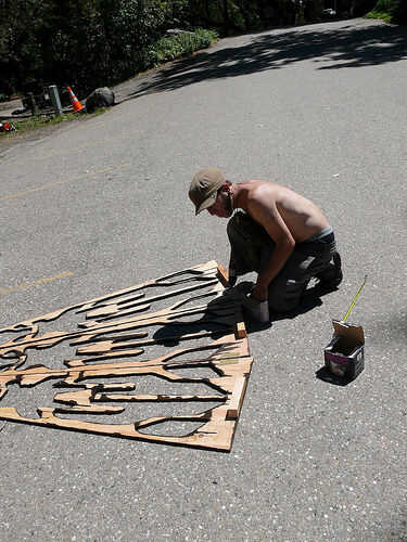 Las linternas son ensambladas por doblar en pirámides y conectar los cables en los tornillos. desnudo bombillas con accesorios simples luego se suspenden dentro.