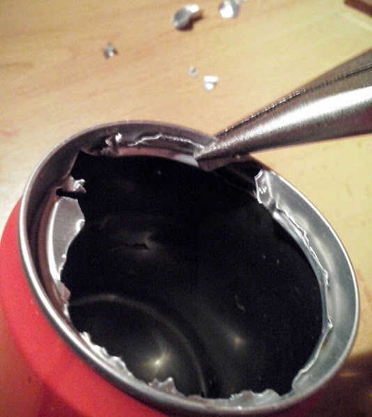 Ahora puede lavar la lata, con un cepillo o simplemente sacudiendo el agua caliente y jabón.
