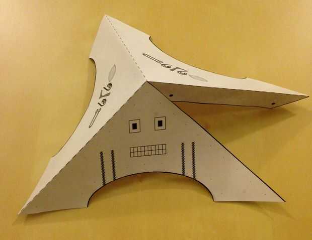 Después de doblar su pirámide robot debería verse como la segunda foto de arriba.