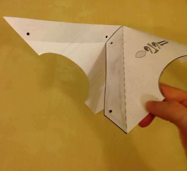 Llevar los puntos y el área gris a los puntos y el área gris en la parte posterior de la cara del robot entre sí. Presione el papel pegado contra el otro lado del papel. Mantenga hasta palos.