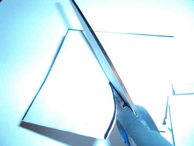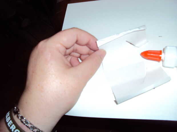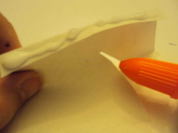 Cortar nuestra plantilla y su cola. En la plantilla, verá una línea para colocar pegamento. (los más pequeños punteados). Me doble el papel en esa línea, luego colocar el pegamento.