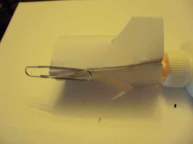Pegan en la parte superior de la cabeza, otra vez usé un clip para sostenerlo en lugar. Luego unir la zona del cuello. De nuevo utilice un clip para sostenerlo en lugar.