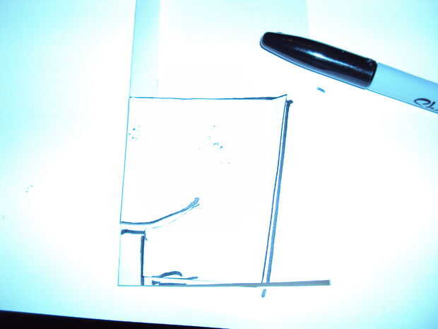 Dibuja alrededor de la plantilla si lo desea (aquí podría sugerir un lápiz, un marcador de sangrado a través de, siguió adelante y lo usó para la foto así que usted podría ver doblado hacia fuera pero se dará cuenta utiliza una pieza diferente para crear la cabeza)