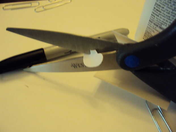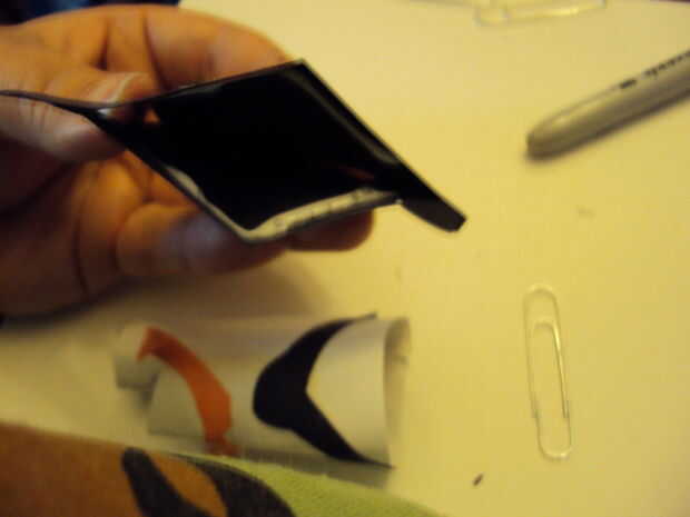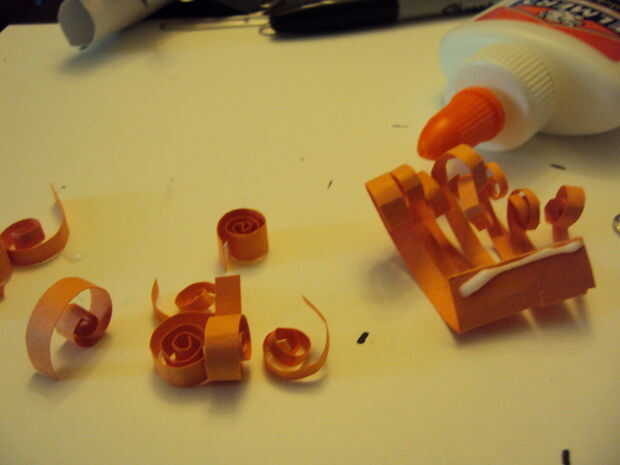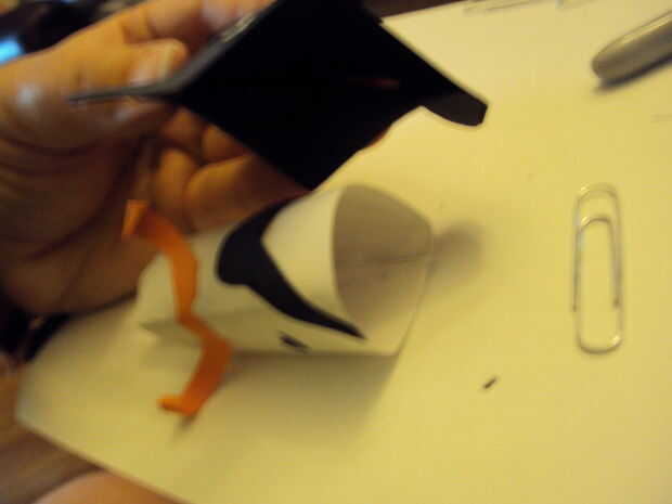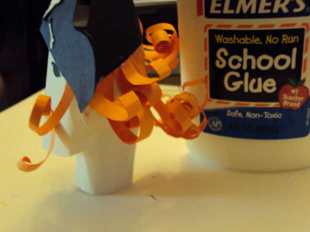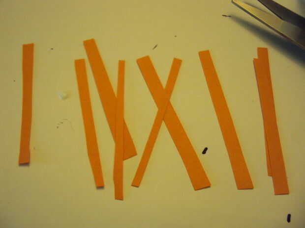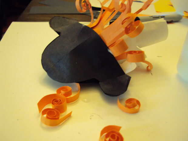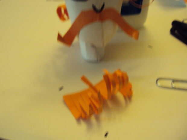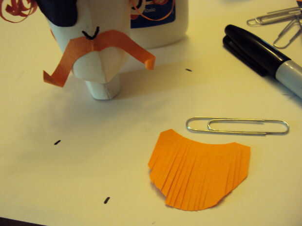 Para la barba comentar el tamaño de la abertura para el bigote y la barbilla. Corte en un bonito C y cortado la barba en tiras dejando un espacio para todas las tiras a la estancia unida y luego doblar sobre eventualmente para mantener el pegamento. Rizó el extremo de la barba.