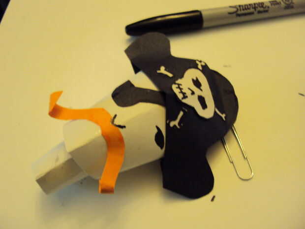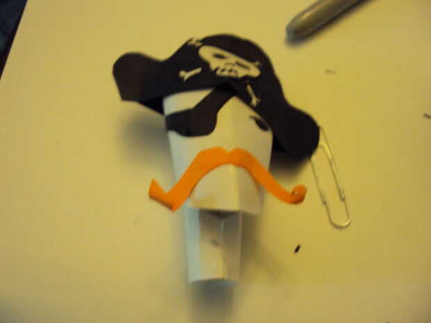 Fue en este punto que decidí piratas necesitan oír. Usted puede usar la plantilla si lo desea, pero sin orejas manos. Dése un poco puedes poner pegamento en adherir las orejas a la cabeza. Antes de pegar, añadir un bonito C para el interior del oído. Usted puede sentir como la adición de un pendiente o dos, ahora sería el mejor momento para hacerlo para el oído. Puede agregarse más adelante (te darás cuenta que es el orden que hice en) pero se hacen más sentido y apariencia más agradable si lo haces en este momento. (a veces aprendemos de nuestros errores)