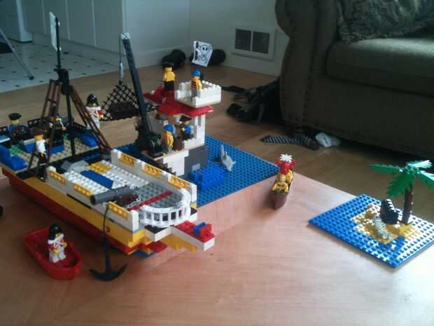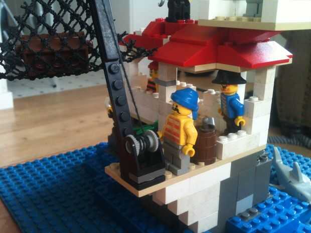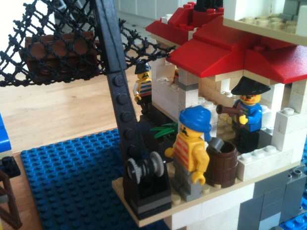 La fortaleza pirata se hace usando las grandes rocas para conjuntos bajo el agua y el cabrestante de elevación de carga.