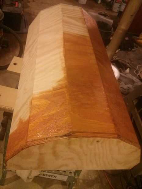 Usé una mancha de madera roja por el color de la caja principal y la tapa. Mancharon el interior y la parte inferior del pecho así que allí no quedaba nada sin manchas.