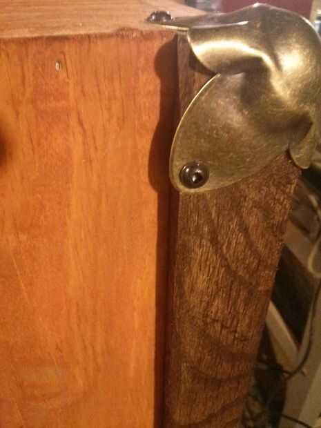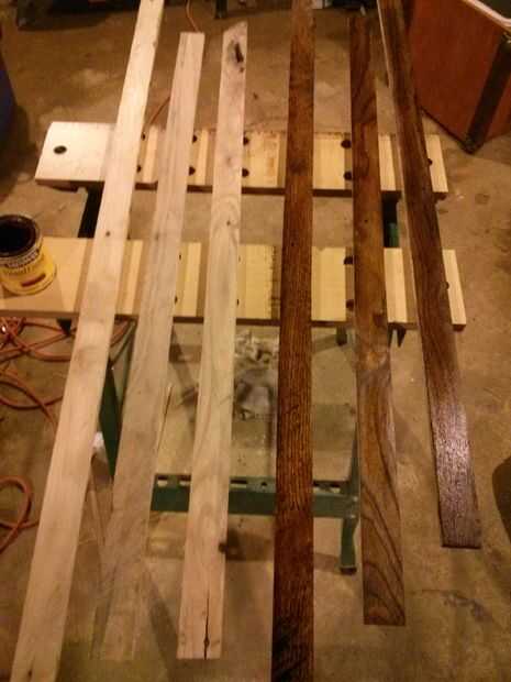 Ripeado y lijar las tablas de roble a los tamaños deseados con mi sierra de mesa, luego aplica en el pecho en cada borde/esquina y dos en el medio.