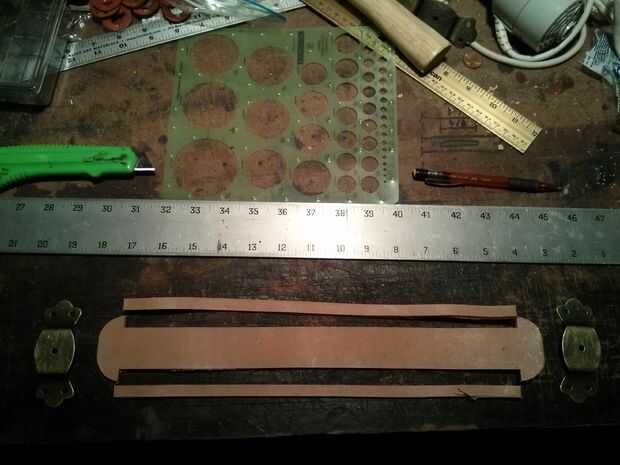 I corte y teñido del cuero para montar las abrazaderas de palanca e incluso ha añadido un relieve "D" en el cuero (como 'Temor' pirata).