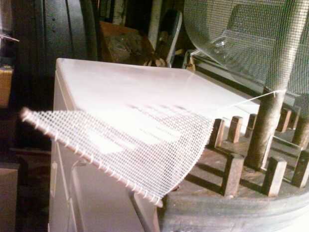 Para sujetar las velas a las yardas, había atado de una longitud de cadena en una esquina de las velas y ensarta alrededor en forma de espiral a lo largo de los patios, como se muestra en la imagen, atar la cuerda de un nudo al final.