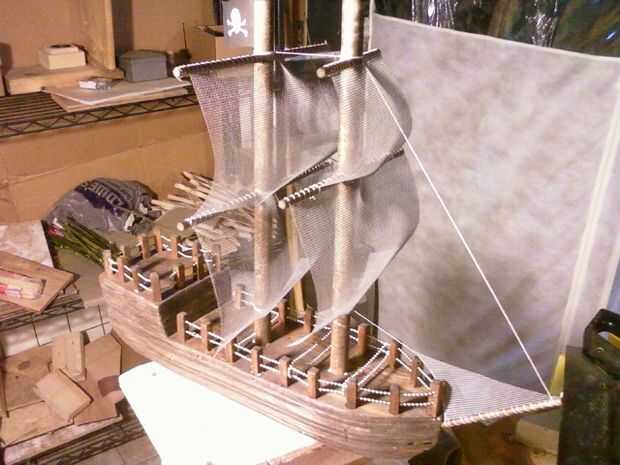 Cadenas más podrían agregarse entre los mástiles o yardas, pero no quiero complicarla más, por temor a que la joyería podría enredarse en él, etc.