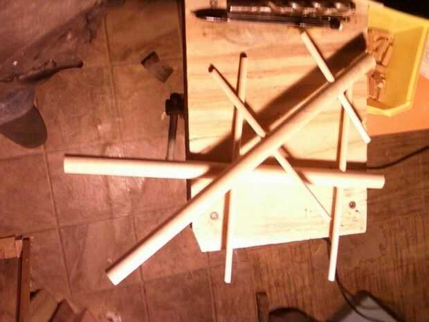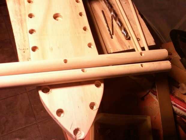 Una vez perforado, I introduce los patios respectivos de sus mástiles y aplica pegamento y dejar secar.