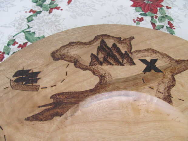 Tengo unas losas grandes del laurel del alcanfor para tratar de gran diámetro de torneado y 2 de ellos tenían grano bastante simple así que pensé en una de ellas que trataría de pirograbado. Esto fue un gran experimento y soy feliz con cómo resultó teniendo en cuenta mi poca experiencia. Ahora sé muchas áreas donde puedo mejorar en esta área. La estufa de leña que era sólo una hornilla pequeña pluma con 5 diferentes consejos que me dieron $ 10 unos años atrás.