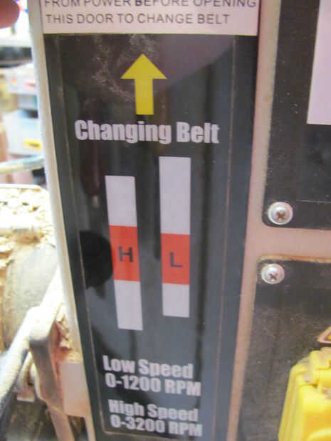 Antes de colocar la madera en el torno debe estar configurado correctamente. Mi torno tiene un dial de velocidad y 2 correas. Para grandes piezas es necesario poner el cinturón en la posición low. Esto da el torno más poder en comparado con tener funcionando a la misma velocidad en la banda alta.