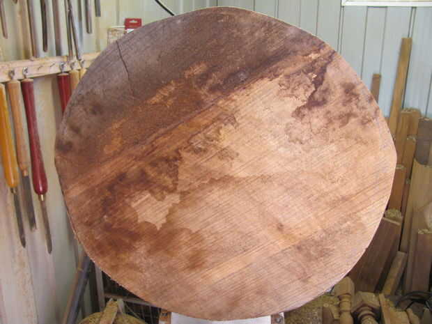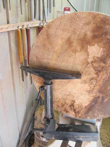 La instalación de la madera. Para dar forma a la parte posterior sólo utilicé mi placa frontal con 6 tornillos. La madera fue cortada redonda para facilitar el giro y me permite aumentar la velocidad más rápida