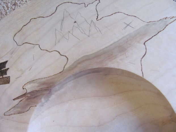 La clave para esto es movimiento continuo. Si deja lo hará más oscuro pero rápidamente. Cuanto más rápido vayas, menos quemaduras, por lo tanto, líneas de luz. Si se mueve lento tienes líneas gruesas oscuras. Empecé a medio camino para conseguir una línea marrón.
