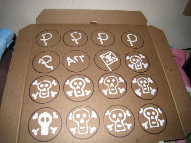 ---Un caja de pizza, o cualquier cartón hará. Se han utilizado cajas de cereal, las espaldas de cuadernos viejos y viejas cajas.