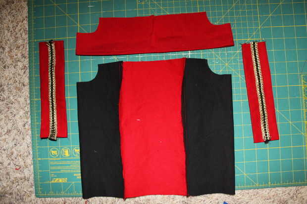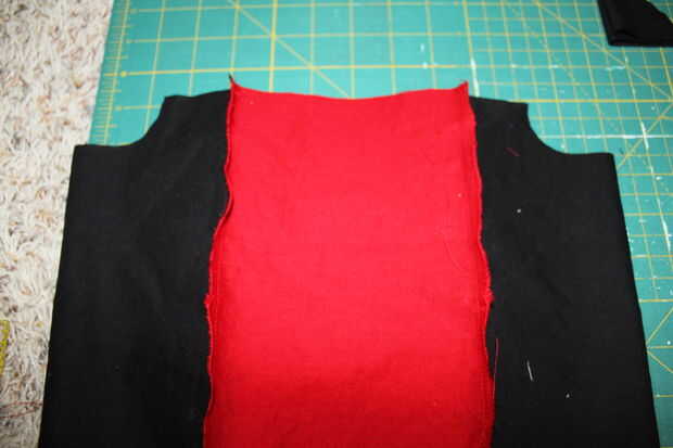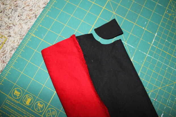 Doble el lazo de la pieza principal por la mitad. Hacer lo mismo con la pieza de revestimiento. Corte ranuras de brazo pequeño como este. No tiene que ser exacta, pero será aproximadamente de 2 pulgadas de ancho y 1 pulgada de alto. La parte superior de la pieza frontal debe tener el rick-rack que es sólo 1 pulgada de la parte superior.