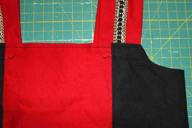 Coloque su cara sobre las correas, los intercalando. PIN todo alrededor. ¿Ver cómo tienes exceso tirantes en la espalda? A segarla apagado más adelante. Coser juntos.