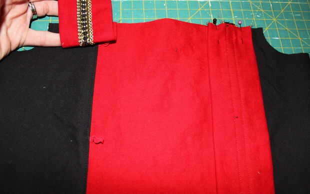 Gire a la derecha hacia fuera y prensa, tener cuidado alrededor de la moldura. Puntada alrededor de todo el asunto.