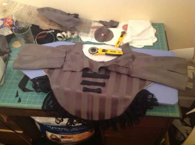 Este paso fue la parte más difícil, tomó una sábana vieja y envuelto alrededor de mi perro. Dibujó en la hoja con un sharpee donde sus piernas y el cuello que se encuentra, entonces aproximadamente le parto esa forma. Quisiera volver a poner la hoja en el perro y perfore toda la tela sobrante y dibujar una línea para marcar hacia fuera. Una vez que tenía la forma correcta que alisar los bordes y la forma simétrica. Probar la forma final en el perro otra vez sólo para estar seguro!