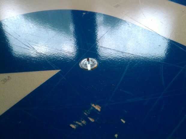 Montaje de la señal en las piernas, usando las cuatro piezas de plástico redondeos como separadores.
