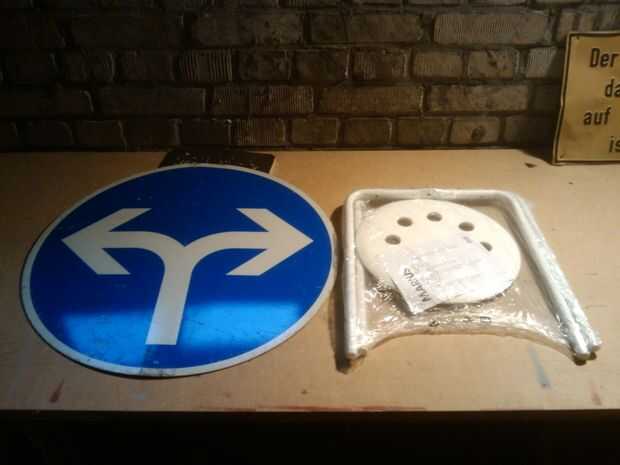 Taladre cuatro agujeros avellanados en el cartel de calle (uso el asiento original como plantilla)