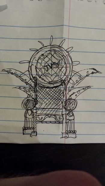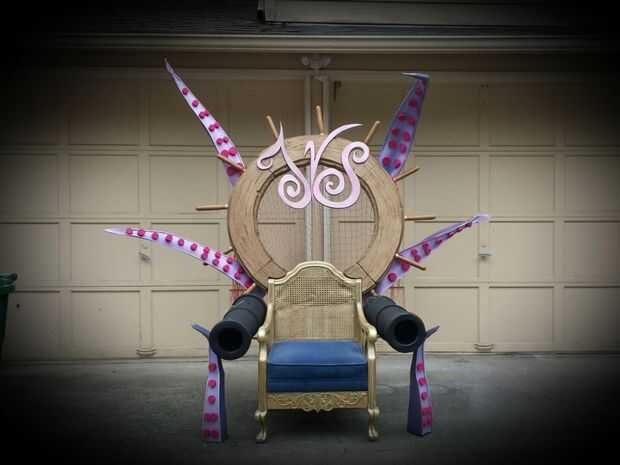 El bosquejo arriba comenzó todo. Inicialmente creíamos de pintalabios punk de vapor, pero fue más tarde sustituir con más tentáculos. La rueda se hace de espuma densa Junta rosa con forro de madera contrachapada. Los mangos de rueda de la nave eran mano en forma de espigas de sólido. Los tentáculos y cañones están esculpidos de goma de la espuma de EVA.